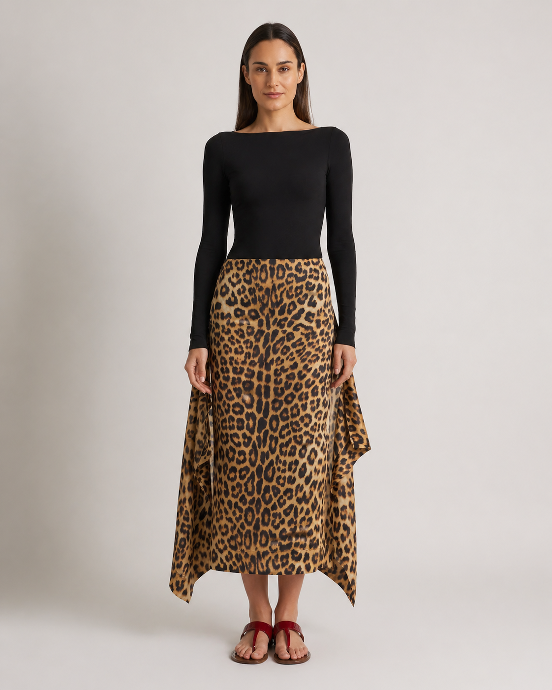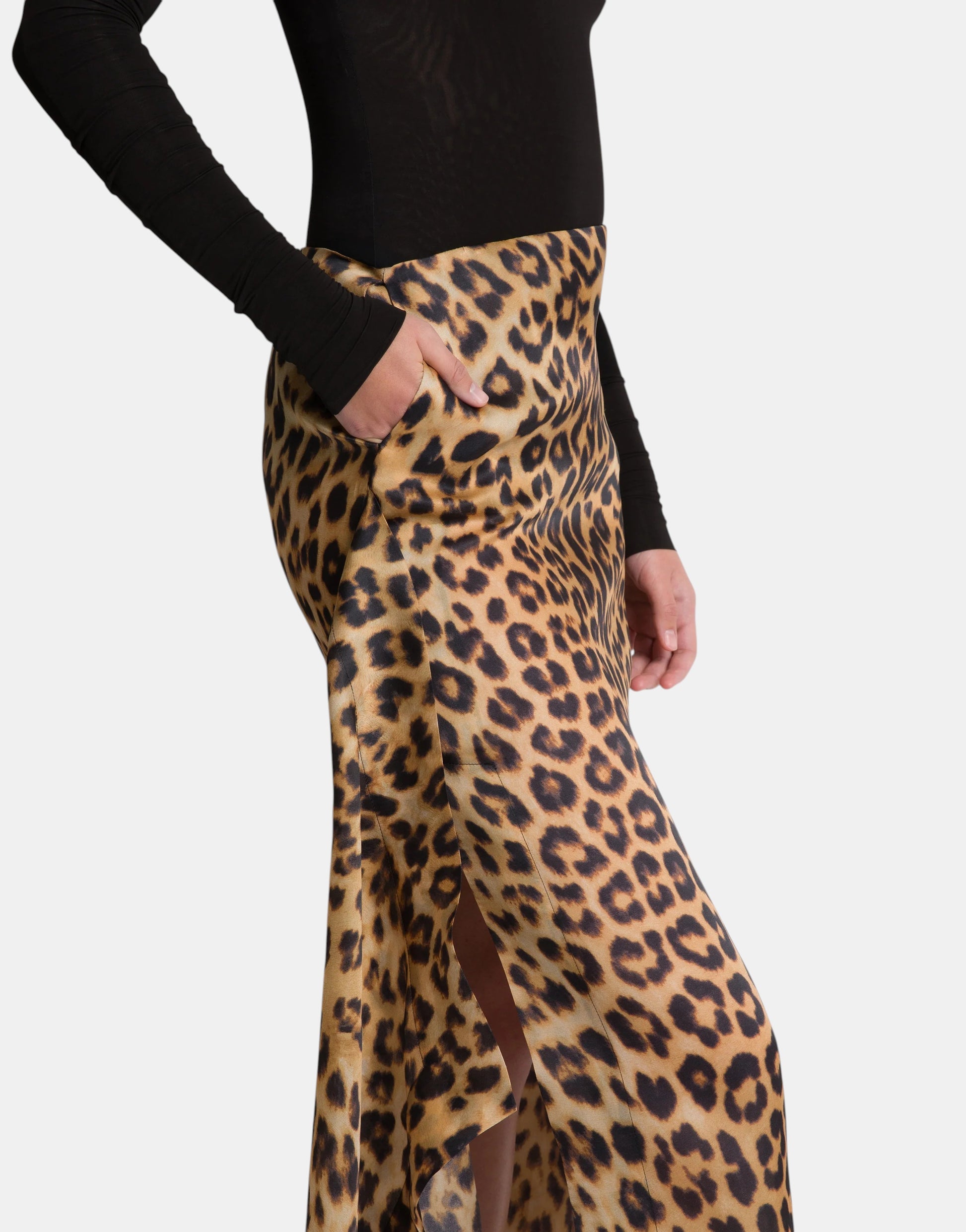 Langer Seidenrock mit Leopardenmuster